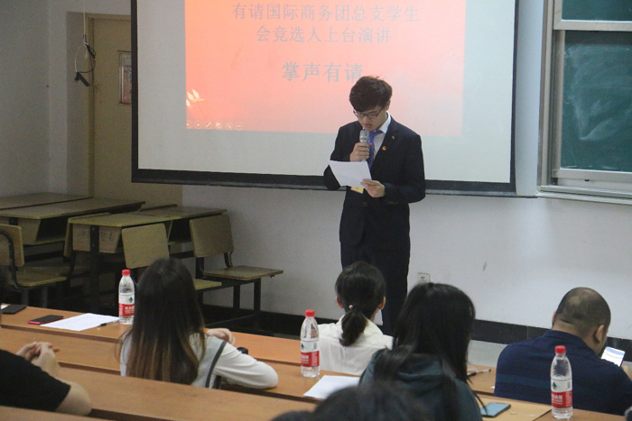 9月23日下午,国际商务学院团总支第二届换届大会在3201教室举行,校团委书记司斌斌书记,校团委周莹老师,国际商务学院党支部书记汪慧书记,国际商务学院学工助理黄吉胜老师、辅导员吕欣欣老师及各分院学生会,大学生记者团,校卫队,社团联合会以及国际商务学院各班级同学参加了此次大会。