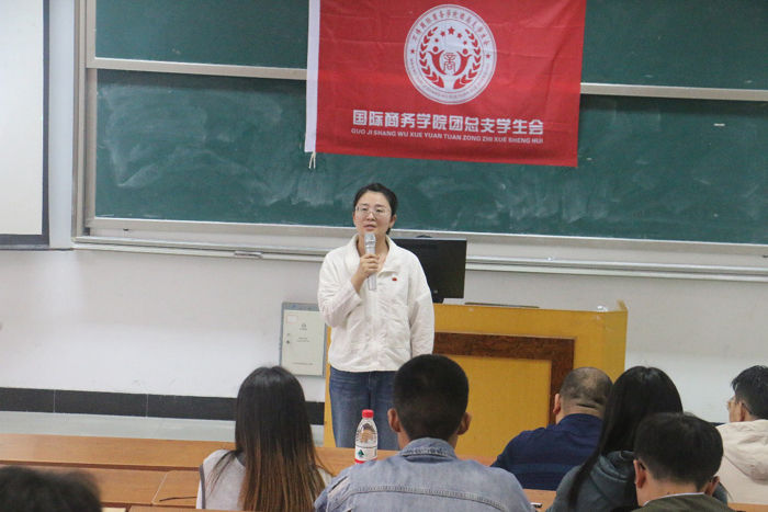 随后国际商务学院党支部书记汪慧上台讲话,对上一届团总支干部成员辛勤工作的肯定,新学院成立的第一届学生会,同学们能克服困难,成功举办多项活动,展现出我院学生的优良的综合素质和良好的精神面貌。对新一届团总支班子成员提出几点要求,希望新一届团总支班子成员能齐心协力,各展才能,激发潜能,用心为学生服务,作为一支有战斗力、有凝聚力的青年后备军。