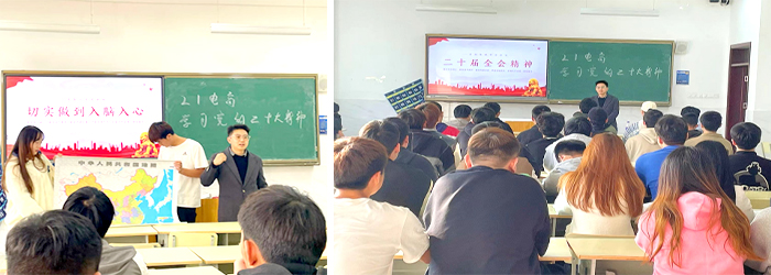 为全面贯彻习近平新时代中国特色社会主义思想,推动党的二十大精神深入到广大师生头脑,深入到广大师生心中,根据《中共万博科技职业学院委员会学习宣传贯彻党的二十大精神工作方案和任务清单》要求,国际商务学院2021级电子商务班开展了“学习二十大,奋进新征程”的主题班会。主题班会由辅导员吕欣欣主持。