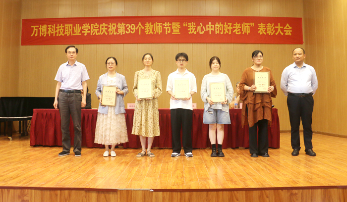 党委副书记、执行校长张进宣读了本次“我心中的好老师”评选活动获奖名单,授予黄吉胜、周璐璐、吕明运、周莹、赵影5名辅导员“益友”称号,授予李想、朱敏、汤丽梅、武秀秀、许莹5名教师“良师”称号。伴随着激昂的音乐,校领导依次为“益友”和“良师”获奖辅导员、教师颁发证书,学生代表上台送上了鲜花和祝福。