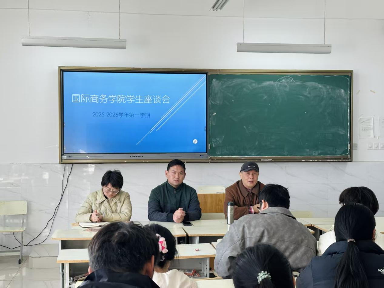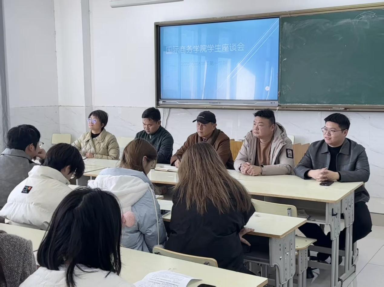 为搭建师生沟通桥梁,持续优化教学水平,提高人才培养质量,11月19日,国际商务学院召开了2025-2026学年度第一学期期中教学评教学生座谈会。国际商务学院院长徐家骅,院长助理高嵩,教学秘书汪慧,教务部王苏洁龙以及学院辅导员参加了本次会议。