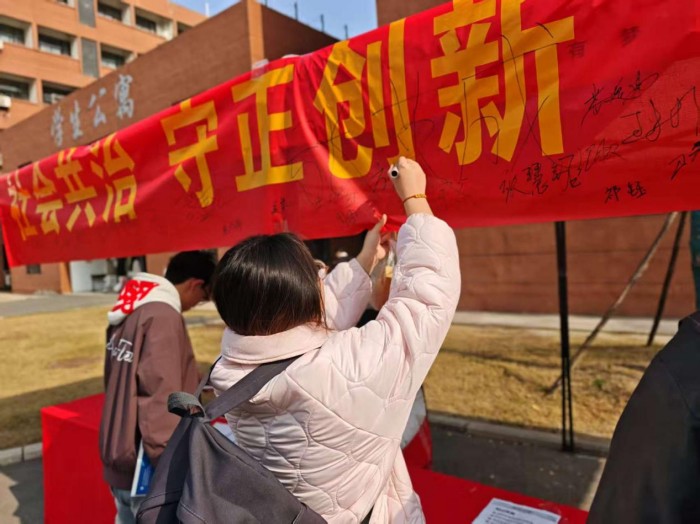 同学们亲手贴上象征关爱与承诺的红丝带,很快展板便布满鲜艳的红色,犹如一片爱心汇聚的暖流,无声诠释着“防艾不防爱”的温暖理念。大家也在横幅上郑重签名,一笔一画间,许下践行“自身健康第一责任人”的承诺。
