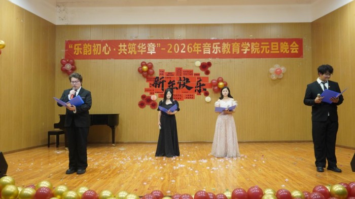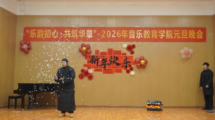 万象更新,福启新岁。为迎接2026新的一年到来,音乐教育学院精心打造的“乐韵初心,共筑华章”元旦晚会在表演厅温情上演,共同奏响辞旧迎新的华美乐章。